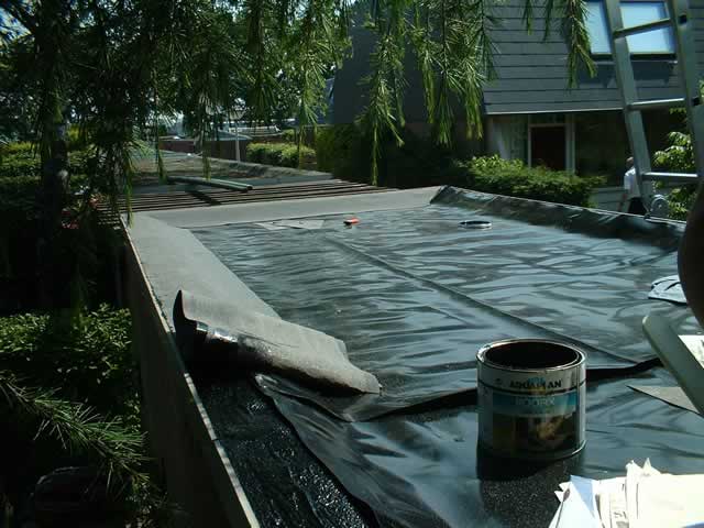 Den Rand der Folie mit Bitumenbahnen abdecken.