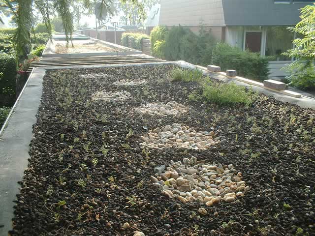 Met als resultaat: Het vegetatiedak in het eerste jaar.